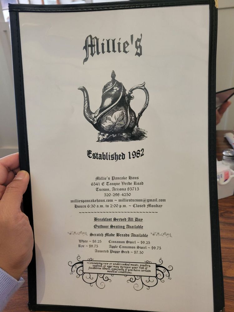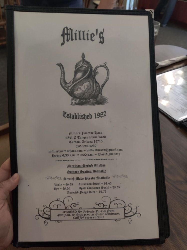 Millie's Pancake Haus, located at 6541 E Tanque Verde Rd in Tucson, AZ, offers a delightful blend of German and American breakfast and brunch options. With a plethora of vegetarian options, this cozy restaurant provides a casual dining experience with excellent service. The menu features traditional dishes prepared with a unique twist, making each bite a flavorful experience. Whether you're looking for a hearty breakfast or a leisurely brunch, Millie's Pancake Haus has something for everyone. The restaurant also offers delivery, takeout, and catering services, making it convenient for all occasions. From the welcoming atmosphere to the delicious food, Millie's Pancake Haus is a must-visit spot for breakfast lovers in Tucson.